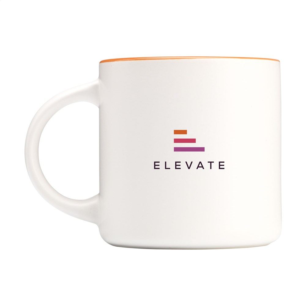 Becher aus hochwertiger Keramik. Mit matter Außenseite und einer farbigen Hochglanz-Innenseite. Spühlmachinenfest. Fassungsvermögen 330 ml.