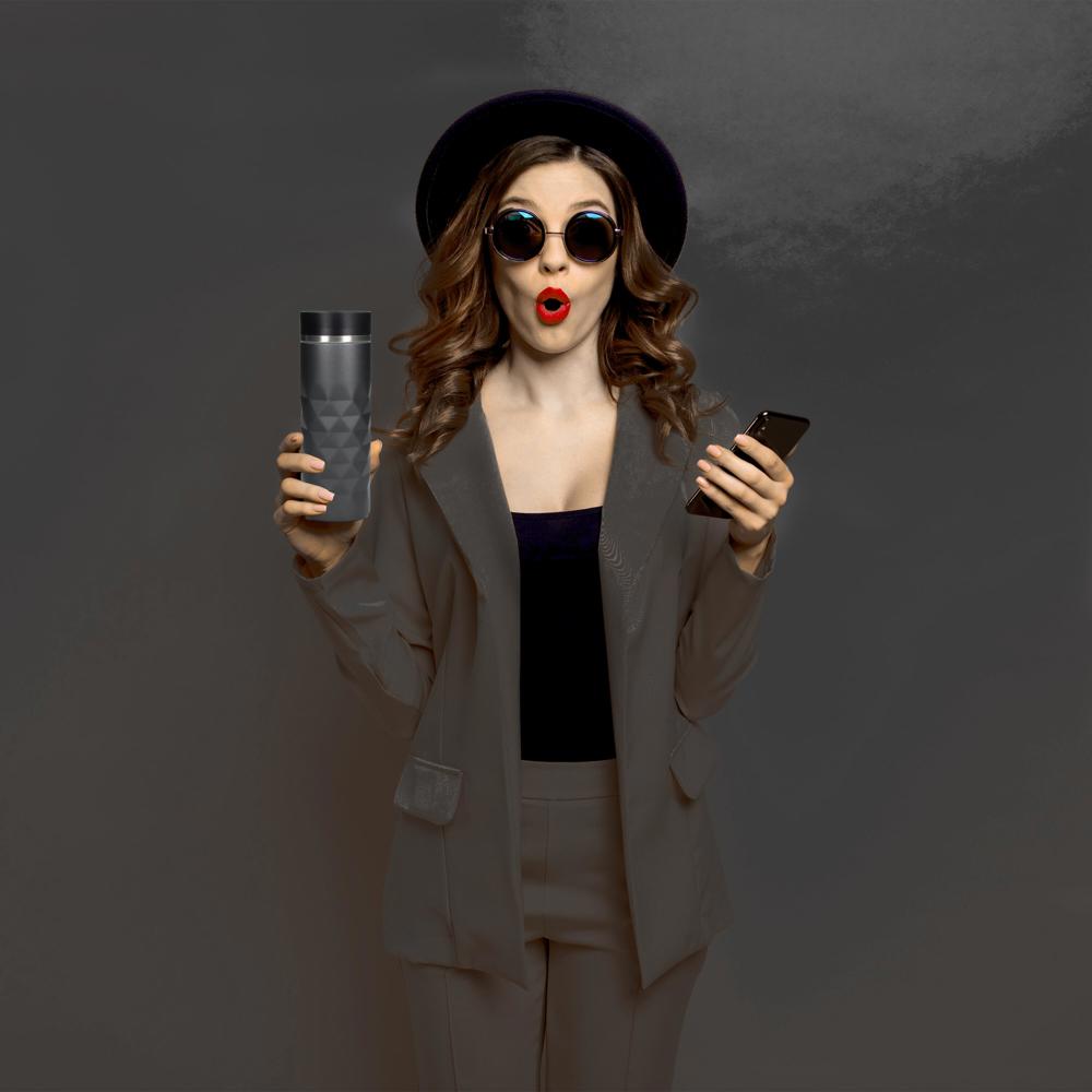 Hochwertiger Thermobecher in mattem Diamant-Design mit Glitzereffekt. Der doppelwandige... mehr