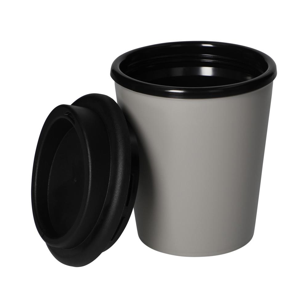 Für den kleinen Kaffee unterwegs. Praktischer To-Go-Becher aus doppelwandigem Kunststoff inkl. Deckel mit Trinköffnung. Der Deckel wird verschraubt und hält somit besonders gut auf dem Becher. Passt auch in die gängigen Getränkehalter in PKW. Aus Bio-Kunststoff gefertigt und in vielen wunderschönen Natur-Farben erhältlich. Füllmenge: 0,25 Liter.