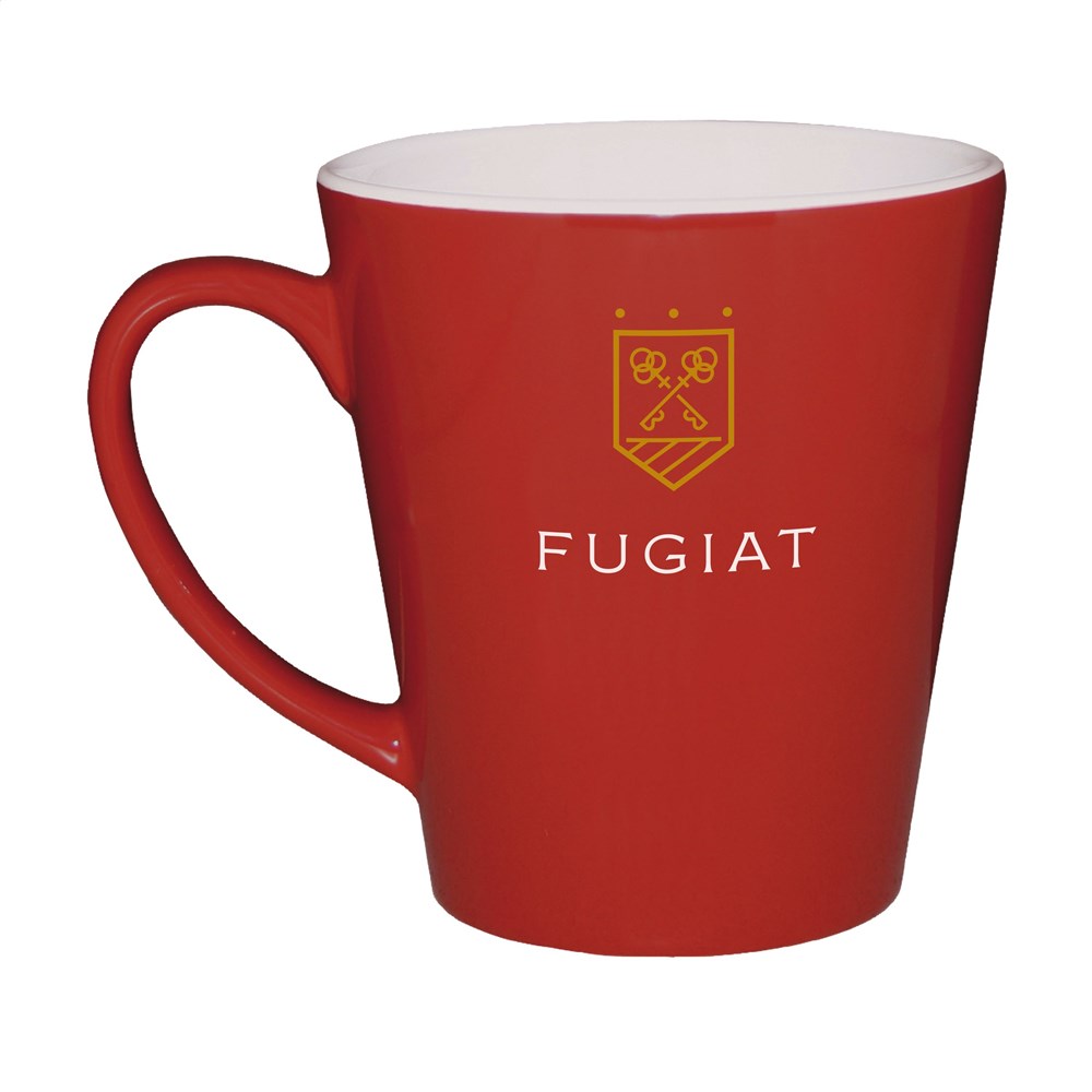 Zeitgenössische Qualitätstasse aus Keramik. Komplett in weiß oder mit farbiger Außenseite. Fassungsvermögen 310 ml. Spülmaschinengeeignet. Der Aufdruck ist spülmaschinengeprüft und nach EN 12875-2 zertifiziert.