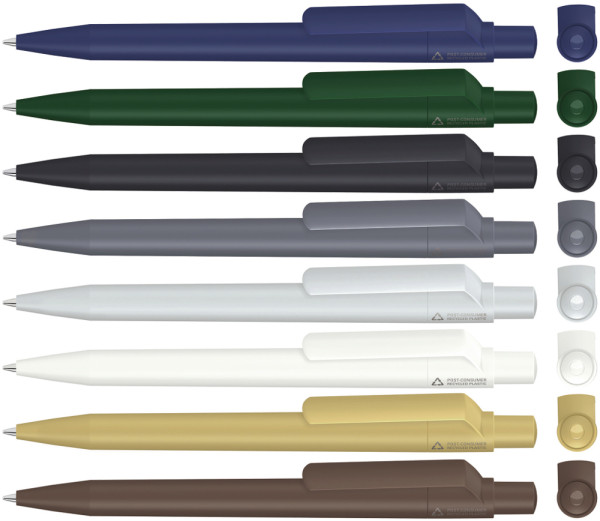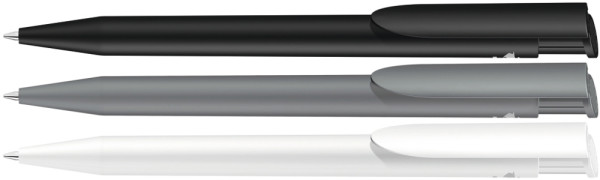 Dreieckiger Textmarker mit drei Schreibfarben. Große Druckfläche auf beiden Seiten. Ideal für den... mehr