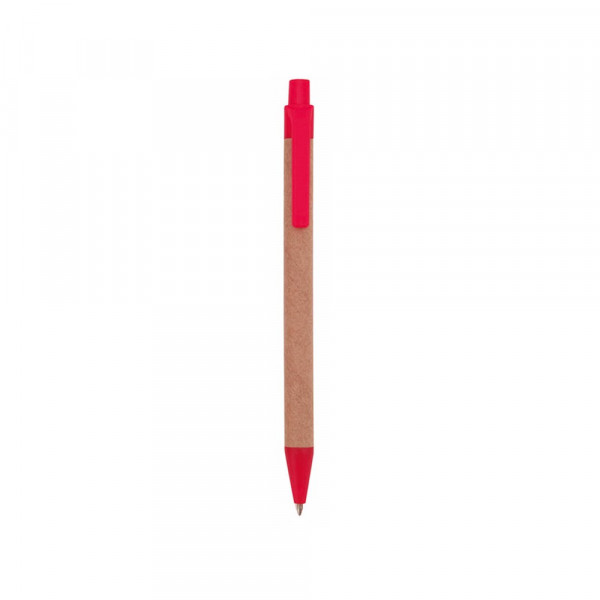 Druck-Kugelschreiber mit origineller Kombination aus recyceltem Karton in Naturfarbe und Kontrastdetails in kräftigen Farben. Blaue Tinte.