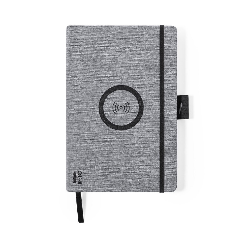 Charger-Notizblock der Liene "Natur" aus widerstandsfähigem Polyester 300D RPET im A5-Format und aus recyceltem Kunststoff, um die Wiederverwendung von Kunststoffabfällen zu fördern und die Nachhaltigkeit des Planeten zu unterstützen. Mit in die Abdeckung integriertem kabellosem 10W-Ladegerät. Enthält 80 Blätter mit Anordnung zu einer Linie. Kompatibel mit Smartphones mit kabelloser Ladetechnologie. Ladekabel Typ C im Lieferumfang enthalten und Bedienungsanleitung in Spanisch und Englisch erhältlich.