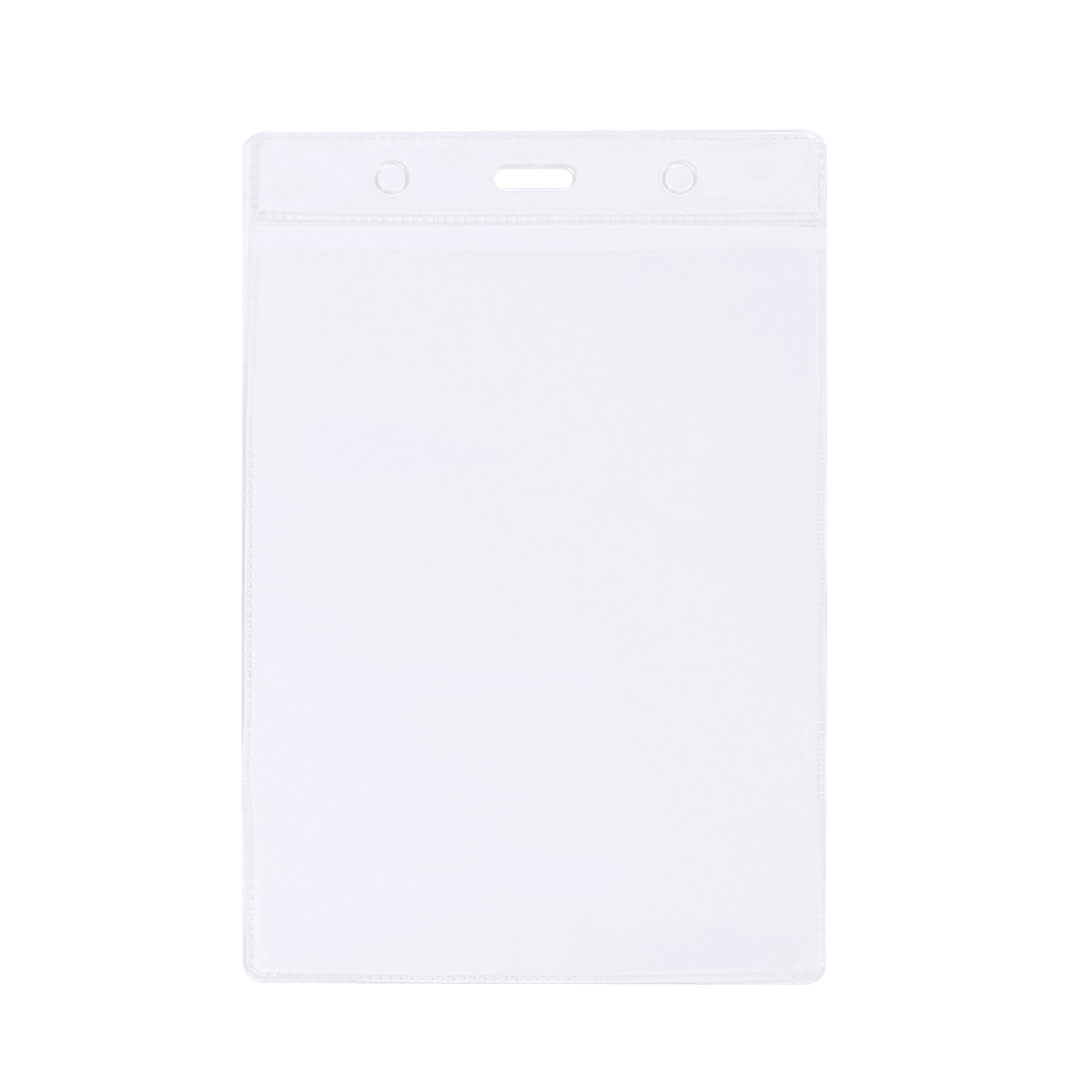 Vertikale PVC-Kennzeichnung. Praktischer Ausweishalter mit verstärkter Oberseite und Perforationen zur zentralen und seitlichen Befestigung.