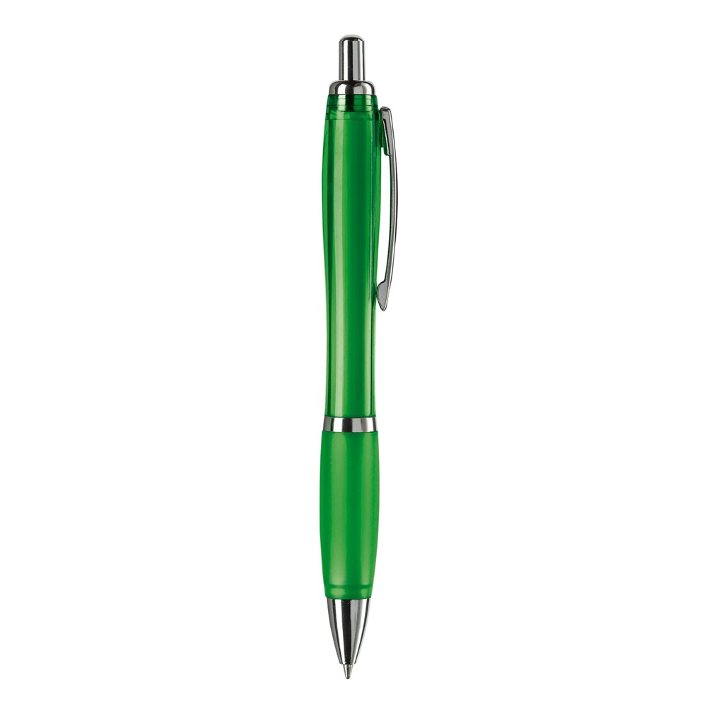 Stilvoller transparenter Kugelschreiber mit Metallclip, Drücker, Zwischenring und Spitze. Blauschreibende Jumbo-Mine mit langer Schreibleistung. Ab 10.000 Stück in weiteren Farben erhältlich. Fragen Sie nach den Möglichkeiten.