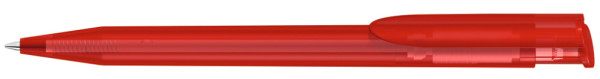 Druckkugelschreiber mit transparent gefrostetem Gehäuse und Clipdrücker.