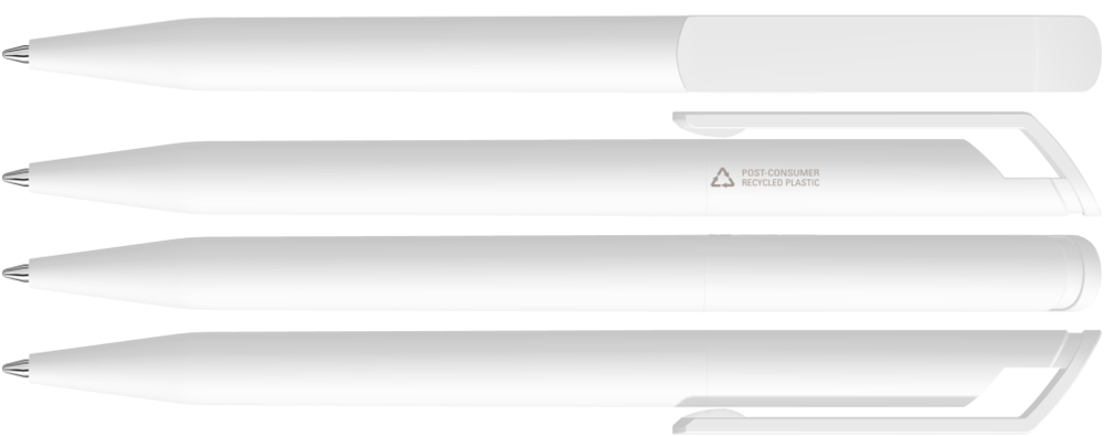 Drehkugelschreiber mit gedeckt glänzendem Gehäuse aus 100% recyceltem Post-Consumer-Kunststoff.