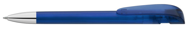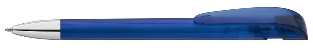Druckkugelschreiber mit transparent glänzendem Gehäuse, breitem Bogenclipdrücker und schwerer Metallspitze glanzverchromt.