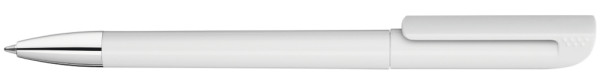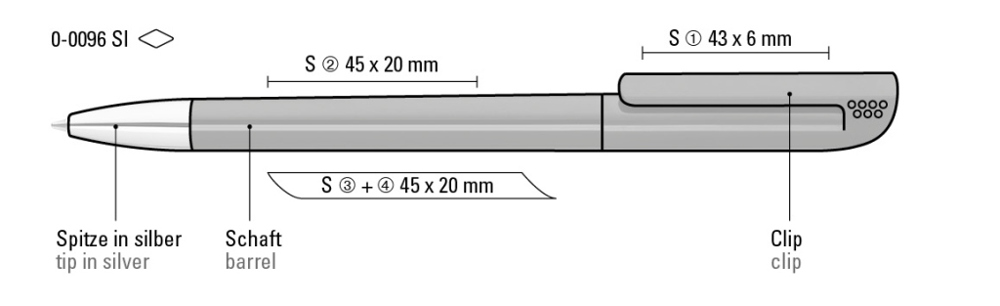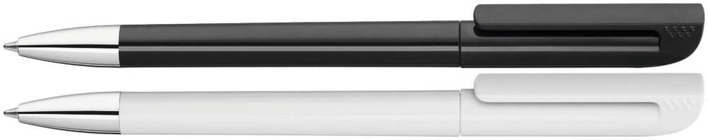 Drehkugelschreiber mit gedeckt glänzendem Gehäuse, matter Clipoberfläche und Spitze glanzverchromt.