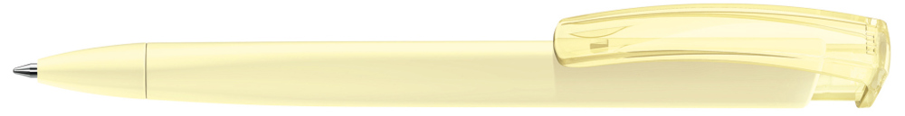 Druckkugelschreiber mit gummiertem Dreikantgehäuse und transparent glänzendem Clip. mehr