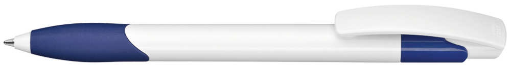 Druckkugelschreiber mit gedeckt glänzendem Schaft und Clipdrücker in weiß. Gummigriffzone und... mehr