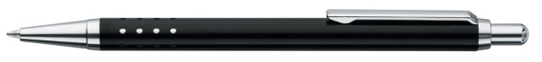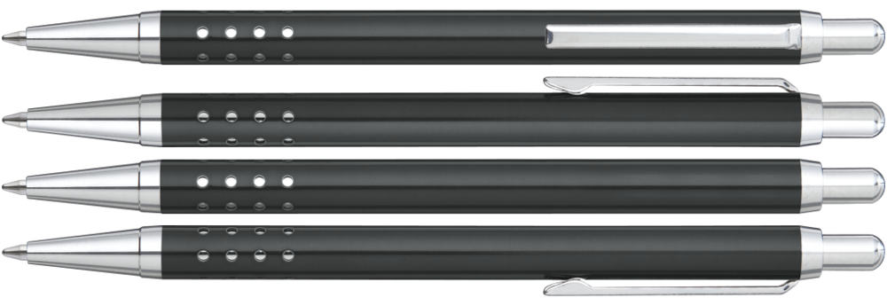 Metall-Druckkugelschreiber lackiert mit gelochter Griffzone. Metallbeschlagteile glanzverchromt.