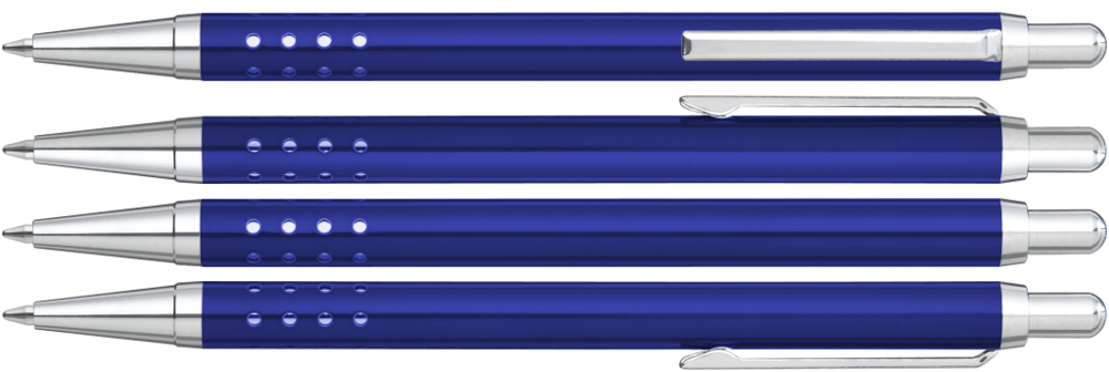 Metall-Druckkugelschreiber lackiert mit gelochter Griffzone. Metallbeschlagteile glanzverchromt.