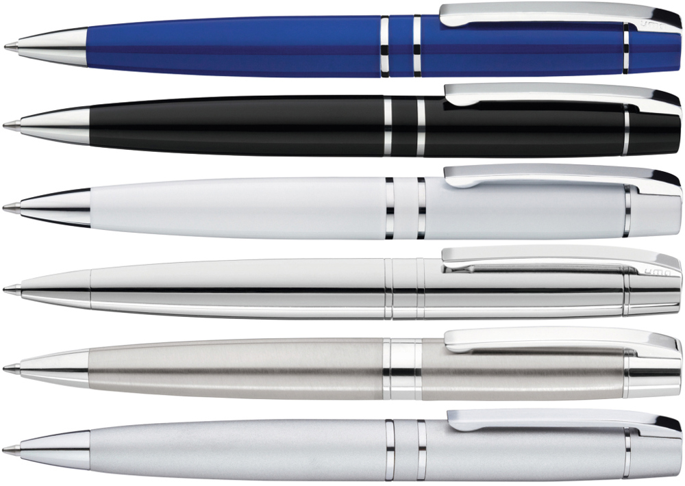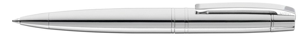 Metall-Drehkugelschreiber mit Softdrehmechanik und gefedertem Clip. Beschlagteile glanzverchromt.