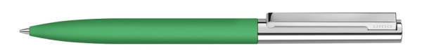 Metall-Drehkugelschreiber mit Softtouch-Schaft, glanzverchromtem Metalloberteil und gefederter Metallclip.