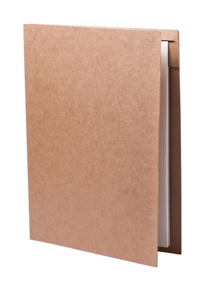 Dokumentenmappe aus Recyclingpapier mit Notizblock (20 Seiten, blanko) und Kugelschreiber (blauschreibend).