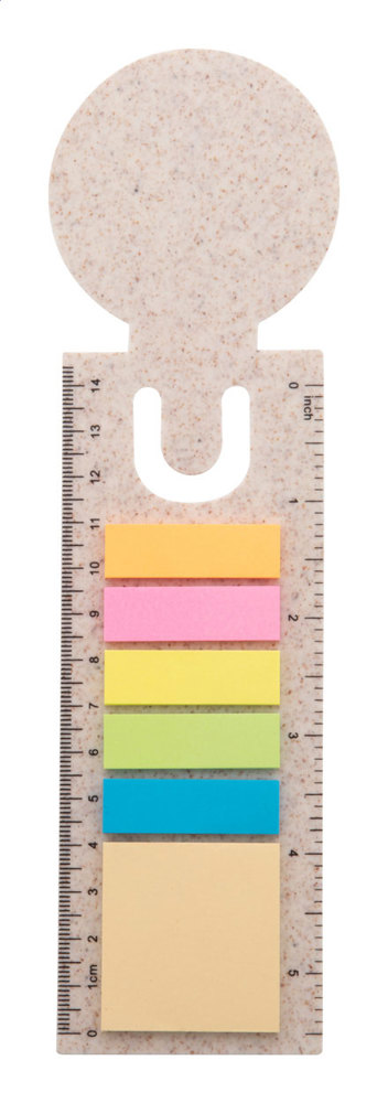 Ökologisches Lesezeichen und Lineal aus Weizenstroh-Kunststoff mit 25 Haftnotizen und 125 Seitenmarkern (in 5 verschiedenen Farben).