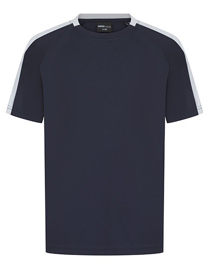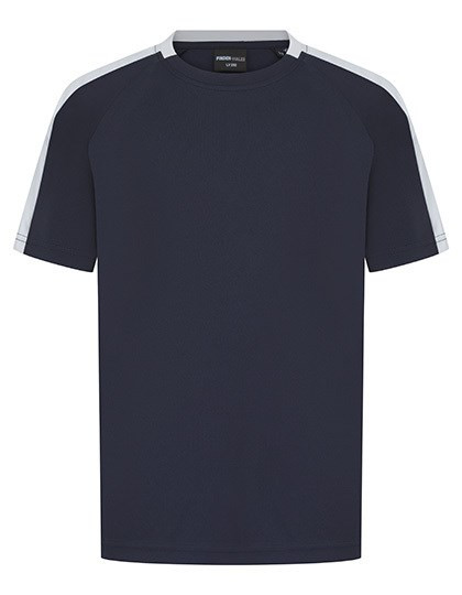 Single-Jersey | Material mit feuchtigkeitsregulierender Oberfläche | 2-teiliger Kontrastkragen | Crewneck | Raglan-Ärmel | Seitliche Kontrasteinsätze aus dem gleichen Stoff am Ärmel | Abreißetikett