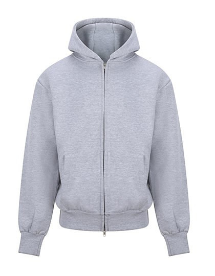 Ringgesponnene Baumwolle | 10% recycelter Polyester | Oversized-Passform | Schweres Material | Doppellagige Kapuze mit drei Segmenten | YKK-Zwei-Wege-Reißverschluss | Keine Kordelzüge | Gerippte Ärmelabschlüsse und Saum | Gebürstetes Innenvlies | Abreißetikett | 100 % Baumwoll-Obermaterial