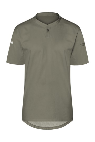 Vorderseite: Köpergewebe; Rückseite: Jersey-Piqué, atmungsaktiv und feuchtigkeitsregulierend | Modernes Arbeitsshirt mit kurzen Ärmeln im sportlich edlem Look | Tailliert geschnitten | Hohe Waschbarkeit | Halsausschnitt mit schmalem Stehkragen und kleiner Knopfleiste | Leistentasche am linkem Ärmel