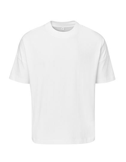 100% Baumwolle (Bio-Baumwolle oder Baumwolle in Umstellung) | Single-Jersey | Unisex-Oversized-Passform | Weich und schwer | Überschnittene Schulter | Tiefer Saum mit Doppelnaht an Körper und Ärmeln | Grober 1x1-Ripp-Kragen | Abreißbares Nackenetikett | Pflegeetikett mit QR-Code zur Rückverfolgung der Lieferkette und Prüfung der positiven Auswirkungen des Kaufs von Biomaterialien