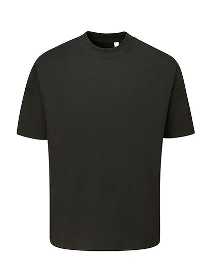 100% Baumwolle (Bio-Baumwolle oder Baumwolle in Umstellung) | Single-Jersey | Unisex-Oversized-Passform | Weich und schwer | Überschnittene Schulter | Tiefer Saum mit Doppelnaht an Körper und Ärmeln | Grober 1x1-Ripp-Kragen | Abreißbares Nackenetikett | Pflegeetikett mit QR-Code zur Rückverfolgung der Lieferkette und Prüfung der positiven Auswirkungen des Kaufs von Biomaterialien
