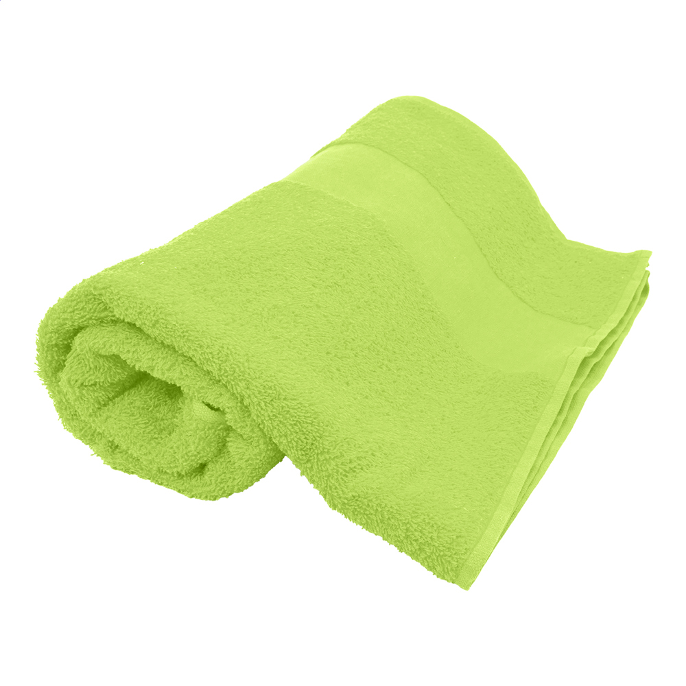 Badetuch aus Baumwollfrottee mit Aufhängeschlaufe und bedruckbarem Bordüre. Material: 100% Baumwolle, 360 g/m².