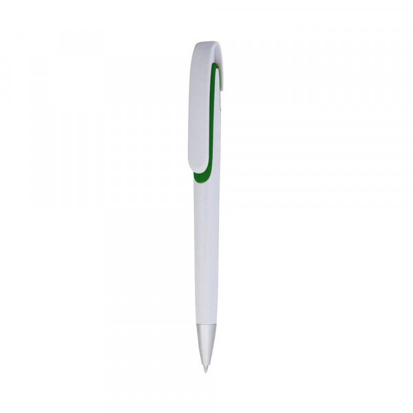 Druck-Kugelschreiber mit auffälligem dreifarbigem Design und Kontrastdetails in lebendigen Farben. Mit glattem Schaft in Weiß und originellem, farblich passendem, gebogenem Clip sowie komfortablem Griff. Blaue Tinte.