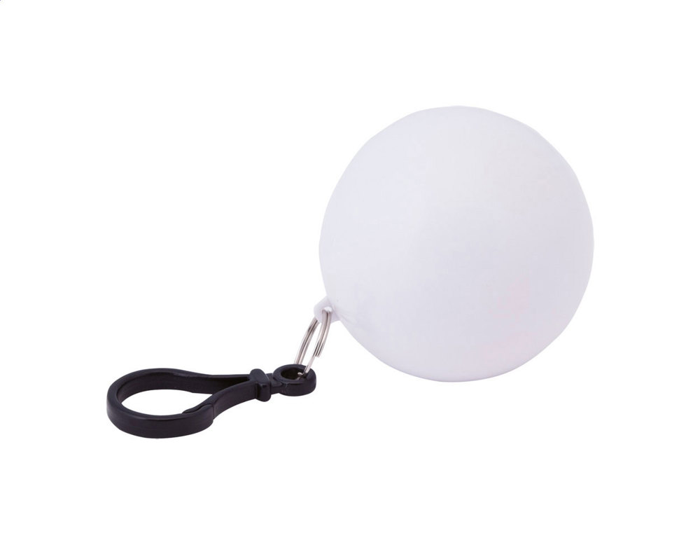 Regenponcho, gefaltet in rundem Schlüsselanhänger mit Karabiner. mehr