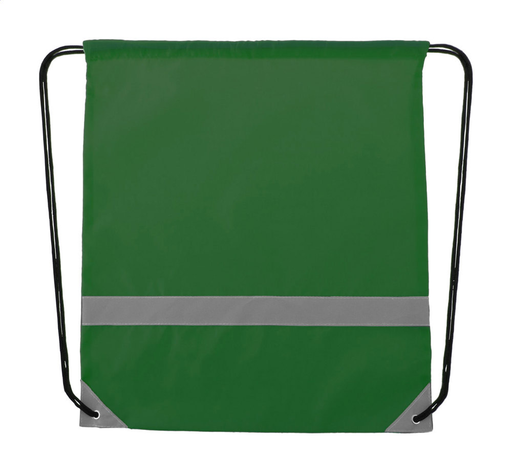 Turnbeutel mit Reflektorstreifen und Zugkordel. Material: 190T Polyester. Nur für Werbezwecke, das Produkt erfüllt nicht die Eigenschaften von persönlicher Schutzausrüstung.