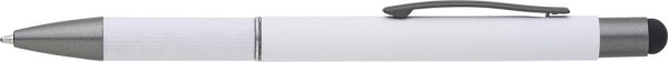 Aluminiumkugelschreiber mit Details aus gerolltem Papier am Griff. Gummispitze für kapazitive... mehr