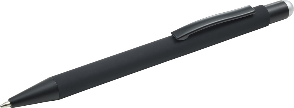 Gummierter schwarzer Kugelschreiber 'Formentera' mit Touch-Funktion. Der Schaft ist unter der... mehr