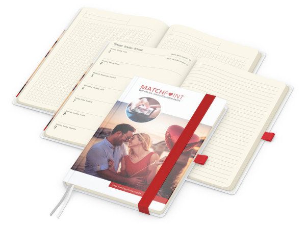 Der Hybrid-Wochentimer Match-Hybrid Creme Bestseller überzeugt durch Funktionalität, hochwertiges Design und die Möglichkeit zur individuellen Gestaltung. Dieser vielseitige Kalender ist die ideale Lösung für Unternehmen, die praktische Werbegeschenke mit einem hohen Nutzwert suchen.