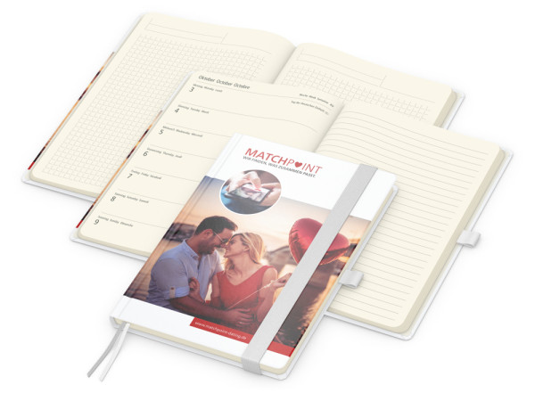 Der Hybrid-Wochentimer Match-Hybrid Creme Bestseller überzeugt durch Funktionalität, hochwertiges Design und die Möglichkeit zur individuellen Gestaltung. Dieser vielseitige Kalender ist die ideale Lösung für Unternehmen, die praktische Werbegeschenke mit einem hohen Nutzwert suchen.