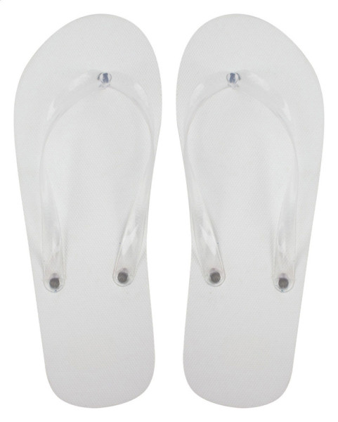 Zehensandalen aus Polyester mit farblich abgestimmten, transparenten PVC-Riemen.