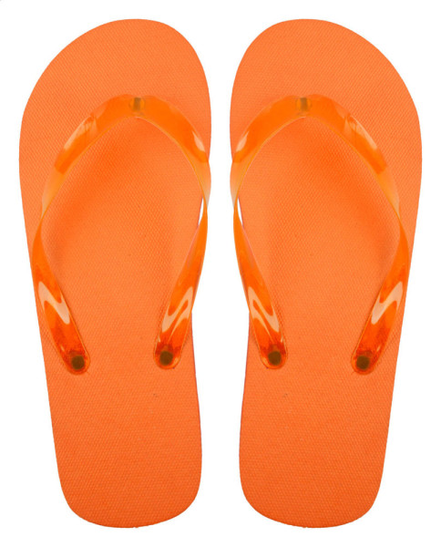 Zehensandalen aus Polyester mit farblich abgestimmten, transparenten PVC-Riemen.