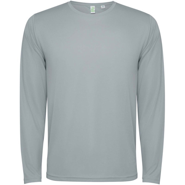 Funktions-Langarm-Shirt für Kinder. Kragen mit passenden Nähten. Rückensaum etwas länger als der Frontsaum. Seitennähte nach vorne versetzt.