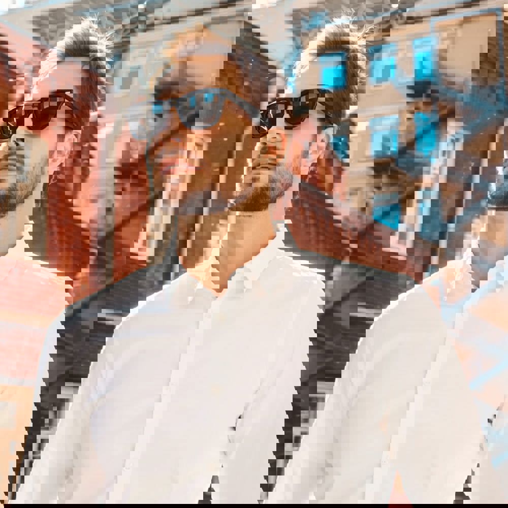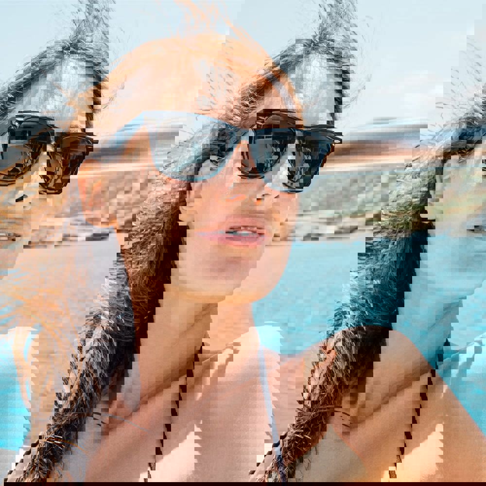 Zeitgenössische Sonnenbrille mit UV400-Filter, für einen modischen Look. Druck auf einem oder beiden Bügeln möglich.