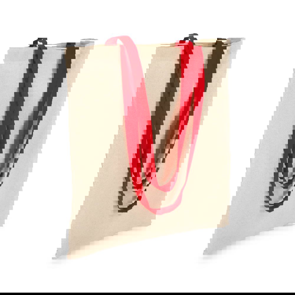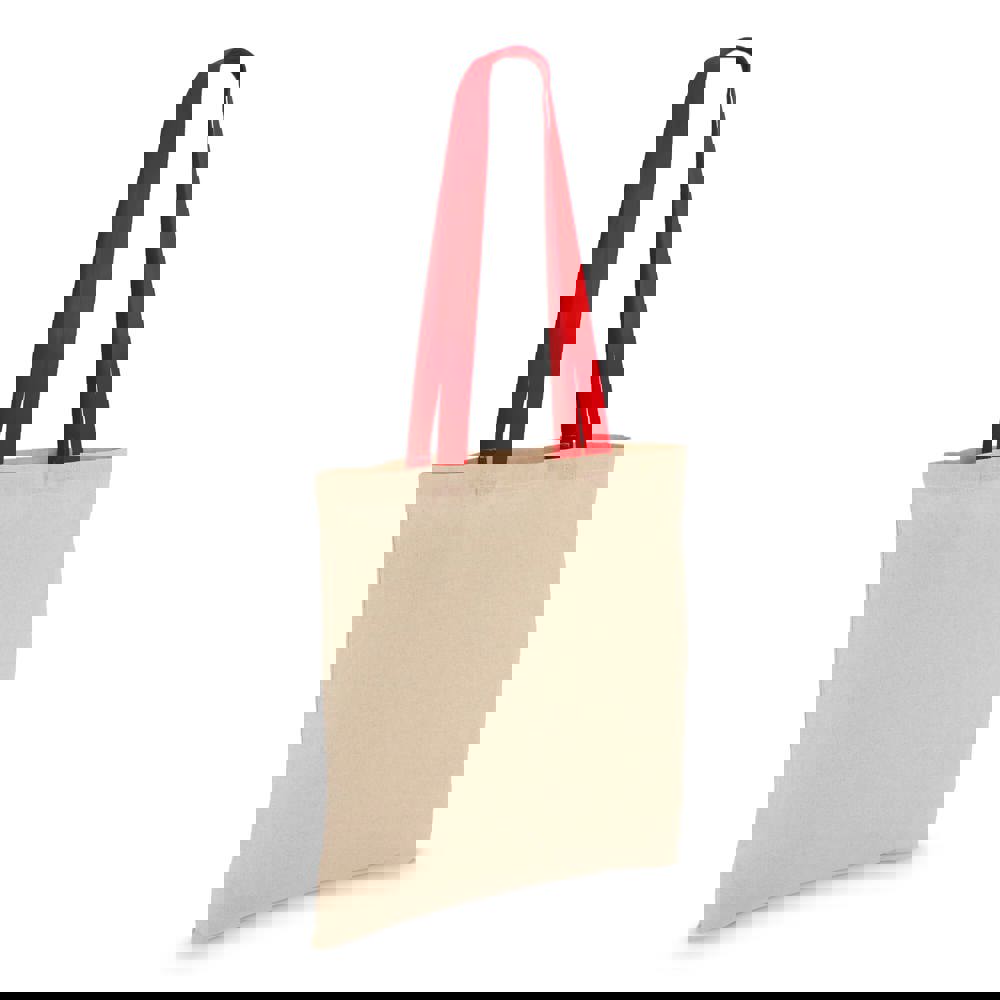 Klassische Tragetasche aus 140 g/m² Baumwolle mit natürlichem Körper und kontrastfarbenen Griffen. Lange Griffe für bequemes Tragen über der Schulter. Oeko-Tex®-zertifiziert. Ideal für Veranstaltungen, den Einzelhandel oder den täglichen Gebrauch.