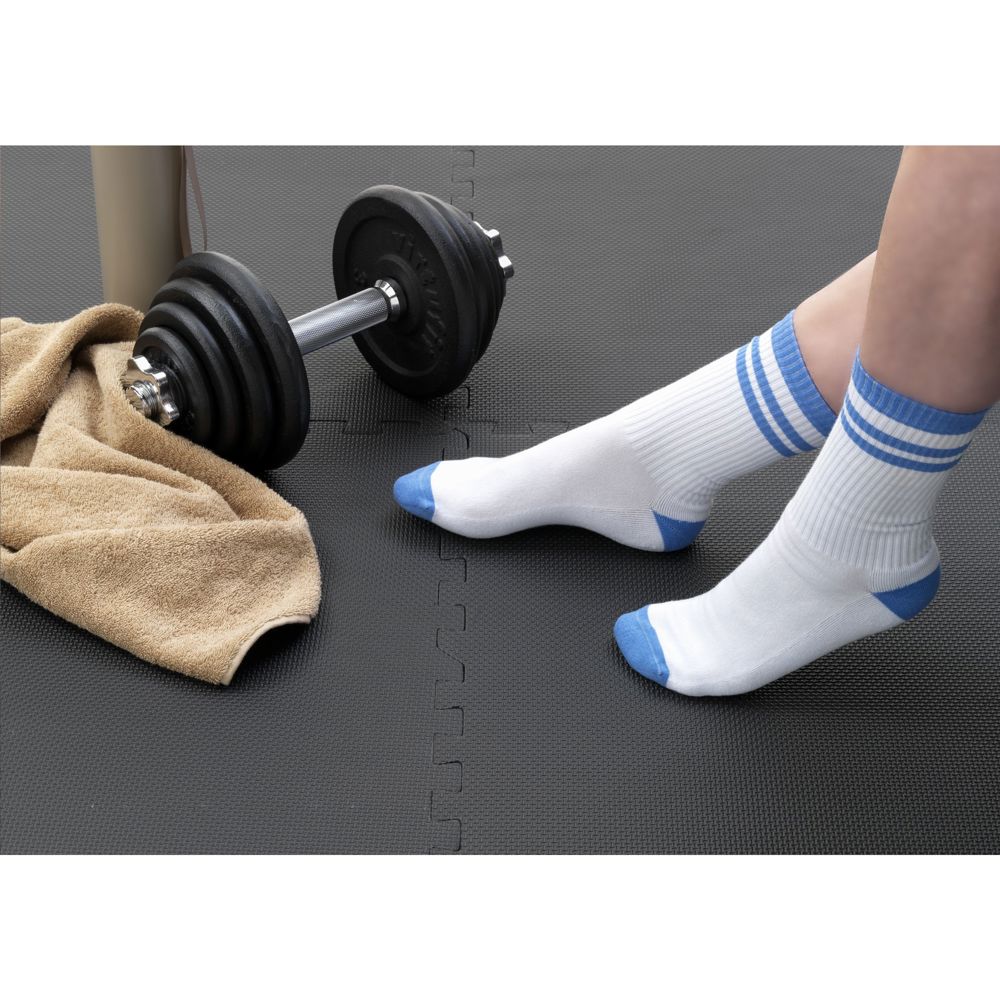 Bequeme Sportsocken der Marke Kingly. Diese hochwertigen Socken werden aus ethisch vertretbaren Materialien hergestellt und bestehen aus einer Mischung aus 80% gekämmter Baumwolle, 17% recyceltem Polyamid und 3% Elasthan. Sie bieten eine eng anliegende, angenehme Passform, ein vollständiges Frottee-Futter für ganztägigen Komfort und verstärkte Fersen- und Zehenzonen für zusätzlichen Komfort und Langlebigkeit. Die Socken können mit einem eingestrickten, individuellen Design in bis zu 6 Farben personalisiert werden. Auswahl aus 160 Garnfarben. Die Socken werden paarweise mit einem recycelten Etikett verpackt, das mit Ihrem eigenen Full-Colour-Design bedruckt werden kann - so entstehen Socken, die perfekt zu Ihrer Markenidentität passen. Erhältliche Größen: M (36–39) und L (40–46). Mindestbestellmenge: 50 Paar pro Größe und pro Design. OEKO-TEX® 24001333 zertifiziert. Hergestellt in Europa. ZUSÄTZLICHE INFORMATIONEN: Die angegebenen PMS-Farben werden mit den verfügbaren Garnen so genau wie möglich angenähert. Aufgrund von Materialunterschieden kann eine exakte Farbübereinstimmung nicht garantiert werden.