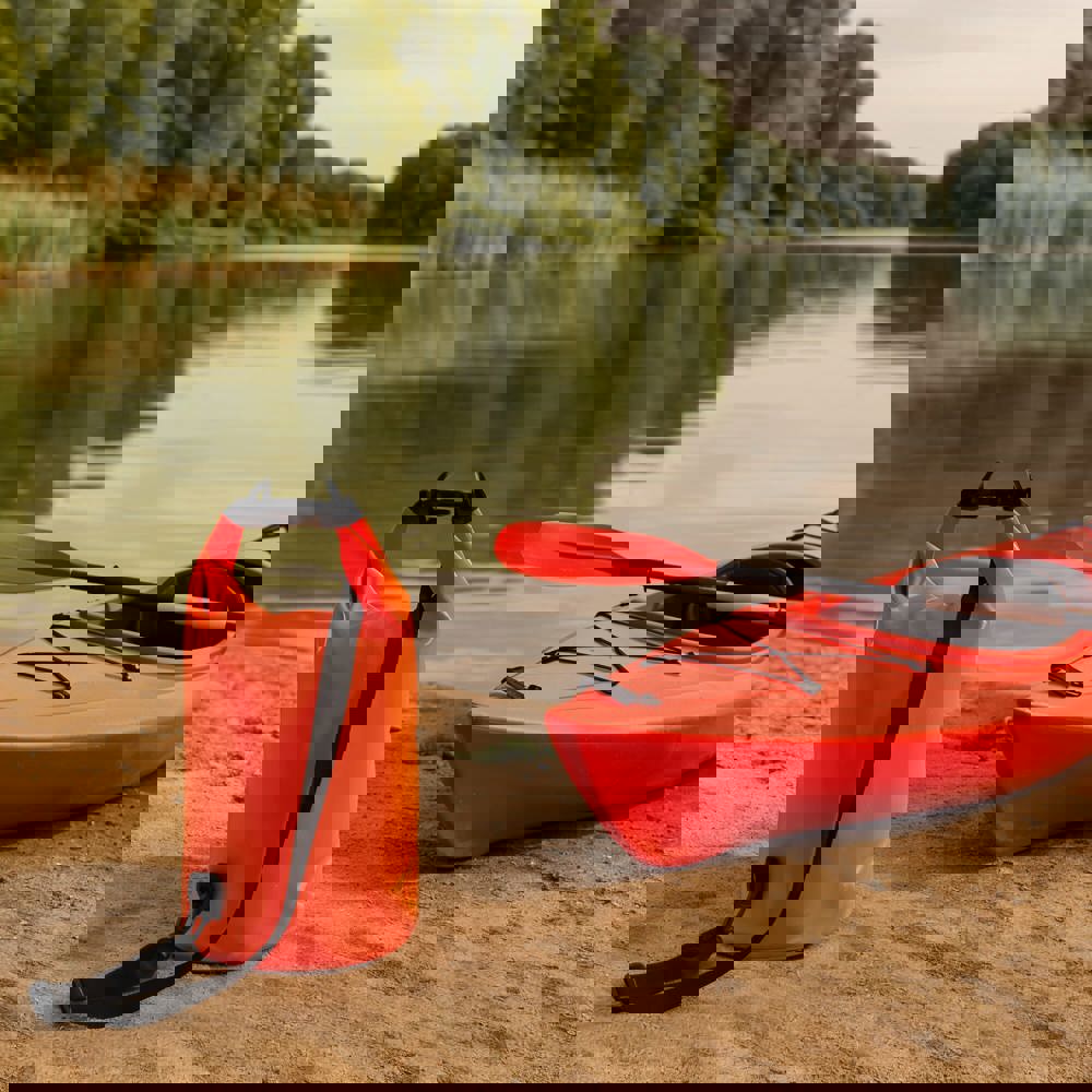 Wasserdichter Seesack, ideal für den Strand, auf einem Boot oder einfach nur für einen Spaziergang durch den Wald. Gefüllt mit Luft bleibt diese Tasche auch in Notfällen schwimmfähig. Mit dem zusätzlichen Ring und den Karabinern kann diese Tasche auch problemlos quer über den Körper getragen werden. Wasserdicht IPX6, geschützt gegen Hochdruckwasserstrahlen aus beliebigem Winkel. Die Tasche darf nicht eingetaucht werden.