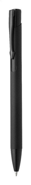 Kugelschreiber aus recyceltem Aluminium mit gummiertem Gehäuse und farblich passenden Details, blauschreibend.