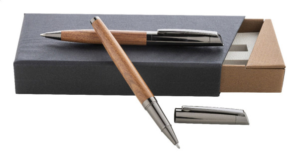 Elegantes Kugelschreiber- und Tintenroller-Set aus Metall mit gestreiftem Schaft, farbigen... mehr