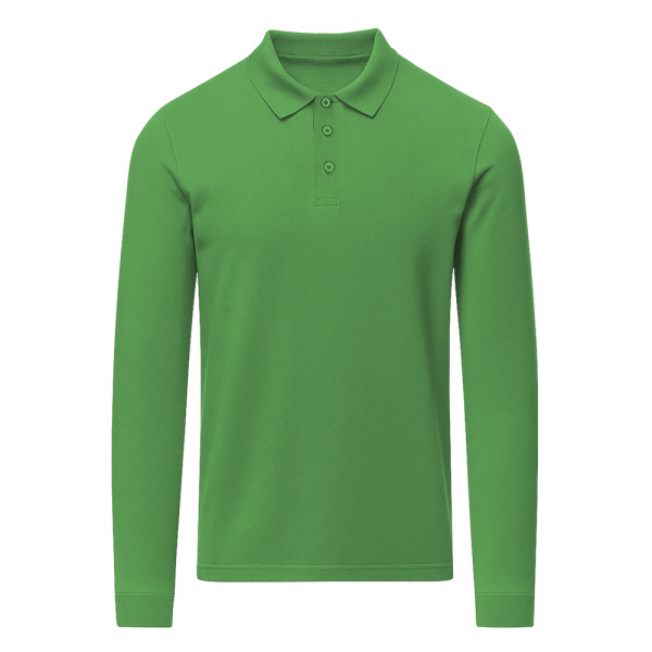 Unisex Langarm-Poloshirt aus Piquéstoff. Kragen und Bündchen in 1x1 Ripp mit Elasthan für besseren Sitz und Komfort. Dreiknopf-Leiste in passender Farbe und verstärktes Nackenband.