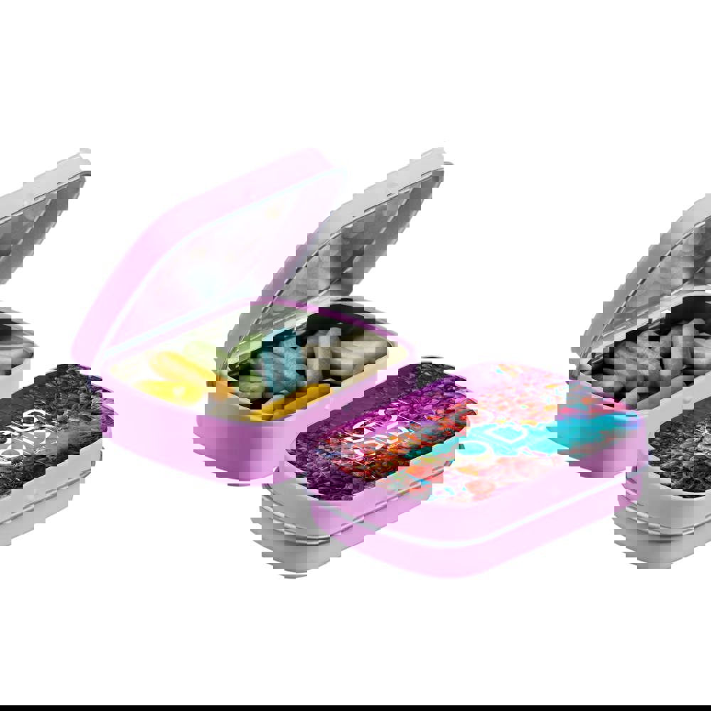 Mini weiße Klappdeckeldose mit ca. 23 Gramm Mini Choco's, vollfarbig bedruckt. Inklusive Inhaltsstoffaufkleber und eingeschweißt.