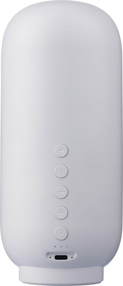 Dieser 3-in-1-Lautsprecher aus recyceltem ABS und rPET-Gewebe verfügt über eine Lichtfunktion sowie eine Schlaftherapie-Funktion. Er ist mit einem 3-W-Lautsprecher, drahtloser Technologie der Version 5.3 und einem 1.200-mAh-Li-Ionen-Akku ausgestattet. Zudem ist er mit vier warmen LED-Lichtern und sechs beruhigenden Schlafklängen ausgestattet. Diese sind „Stream”, „Brahms' Wiegenlied”, „Sea Wave”, „Stille Nacht”, „Fetal” und „Weißes Rauschen”. Der Lautsprecher bietet drei Helligkeitsstufen und einen Timer mit 15-, 30- und 60-Minuten-Einstellungen. Über das Fünf-Tasten-Bedienfeld auf der Rückseite können Sie ganz einfach zwischen dem kabellosen Modus und dem Modus für weißes Rauschen umschalten. Im Lieferumfang ist ein 1 Meter langes, weißes Ladekabel enthalten. Das Gerät ist einzeln verpackt in einer Kraftpapierbox.