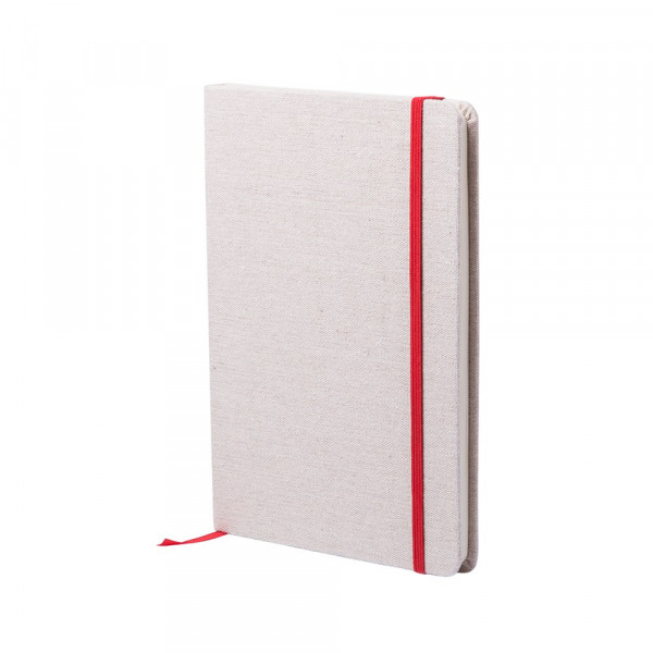 Notizbuch aus natürlichen Materialien. Cover aus weicher, natürlicher Baumwolle in Naturfarbe. Mit Gummibandverschluss und Lesezeichenband in passenden, auffälligen Farben. Enthält 80 Blätter.