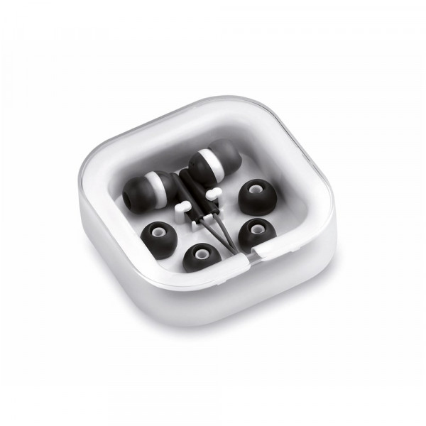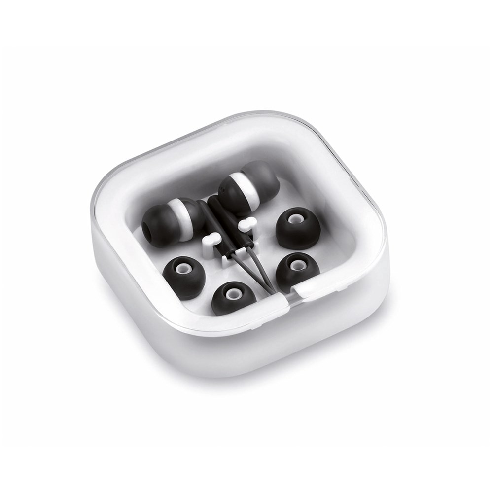Praktische und bequeme In-Ear-Kopfhörer mit lässigem zweifarbigem Design, 3,5 mm-Klinkenstecker und farblich abgestimmtem Kabel. Erhältlich in einer breiten Farbpalette. Präsentiert in einem eleganten Design-Etui und mit Ersatz-Ohrpolstern.