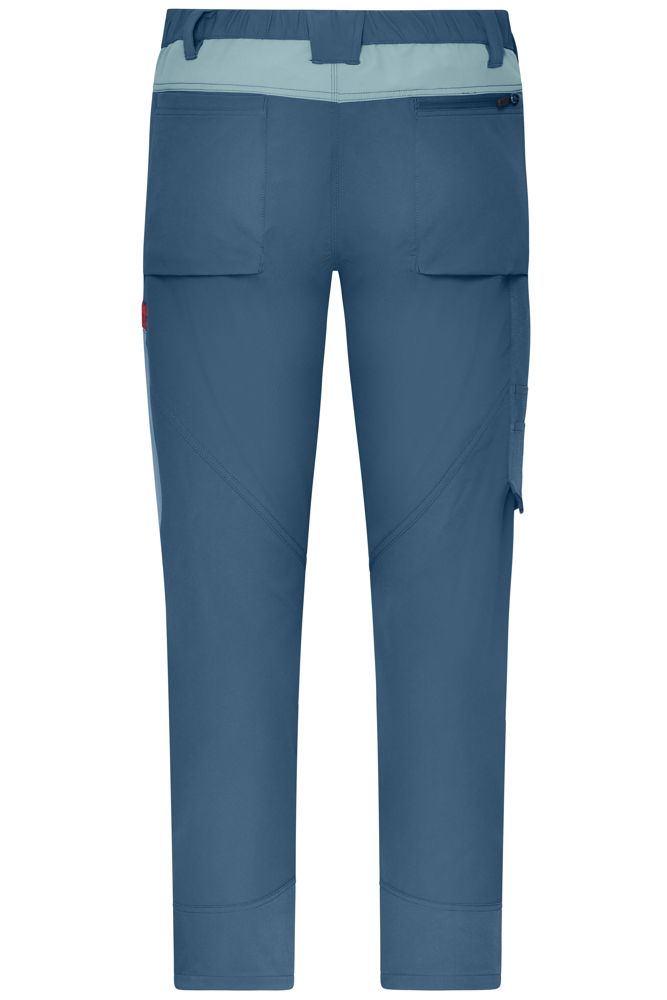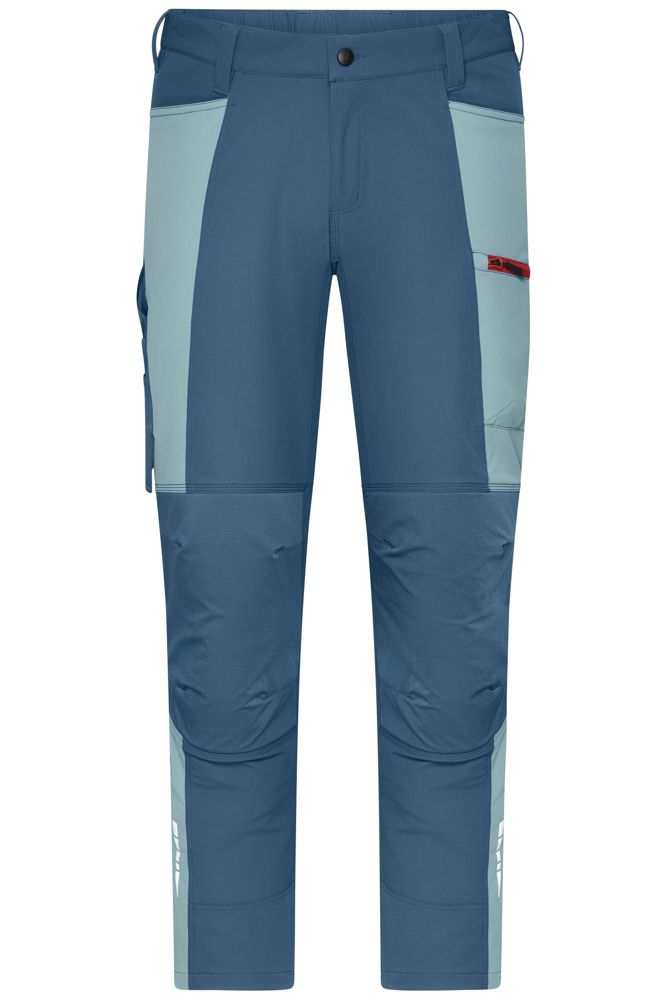 Strapazierfähiger, elastischer 4-Way Stretch mit hohem Elasthan-Anteil für optimale Passform und Bewegungsfreiheit Wasser- und schmutzabweisende Ausrüstung Ergonomisch eingearbeitetes Kniepolster 2-farbige Kontrastverarbeitung mit farblich abgesetzten Details Reflektierender Druck (ohne Schutzfunktion/keine PSA) am vorderen Bein Dehnbarer Bund mit Gürtelschlaufen Reißfeste Dreifachnaht Schubtaschen, diverse Werkzeugtaschen Zollstocktasche, Stiftefächer sowie Kniepolster und Saumbereich aus robustem, elastischem Polyamid-Gewebe 2 Gesäßtaschen, davon 1 mit Reißverschluss 1 seitliche Reißverschluss-Tasche am linken Bein Reißverschlüsse: YKK 1/2 Bundweite: 36 cm 1/2 Hüftweite: 50 cm 1/2 Bundweite gedehnt: 40 cm Seitenlänge: 103 cm Stretch OEKO-TEX® Standard 100 (15.0.70467) lang YKK - Reißverschluss