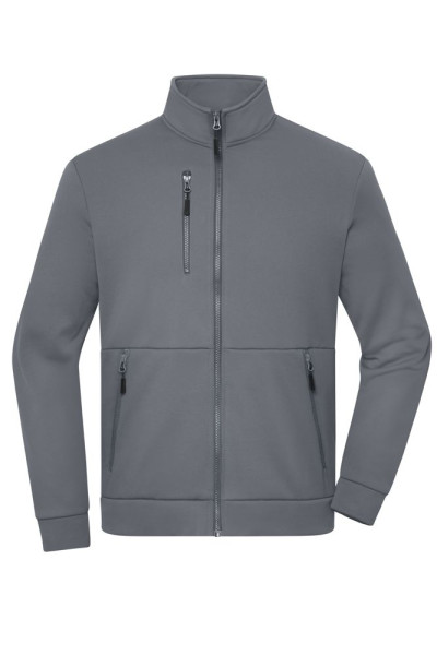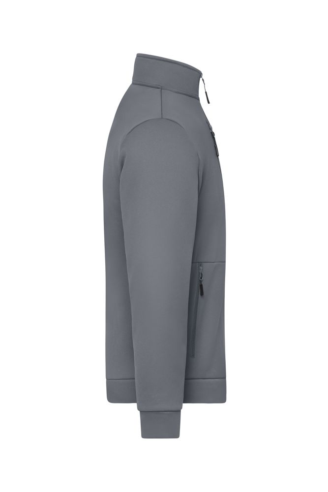Weiches, elastisches Material mit glatter Außenseite und Fleece- Innenseite Das Material hat einen Anteil von 21% Sorona Angesetze, elastische Arm-und Leibbündchen 2 seitliche Reißverschlusstaschen 1 Reißverschluss-Brusttasche Reißverschlüsse: YKK 1/2 Oberweite: 50 cm Länge ab Schulter: 68 cm Ärmel Länge: 64 cm OEKO-TEX® Standard 100 (15.0.70467) Stehkragen YKK - Reißverschluss